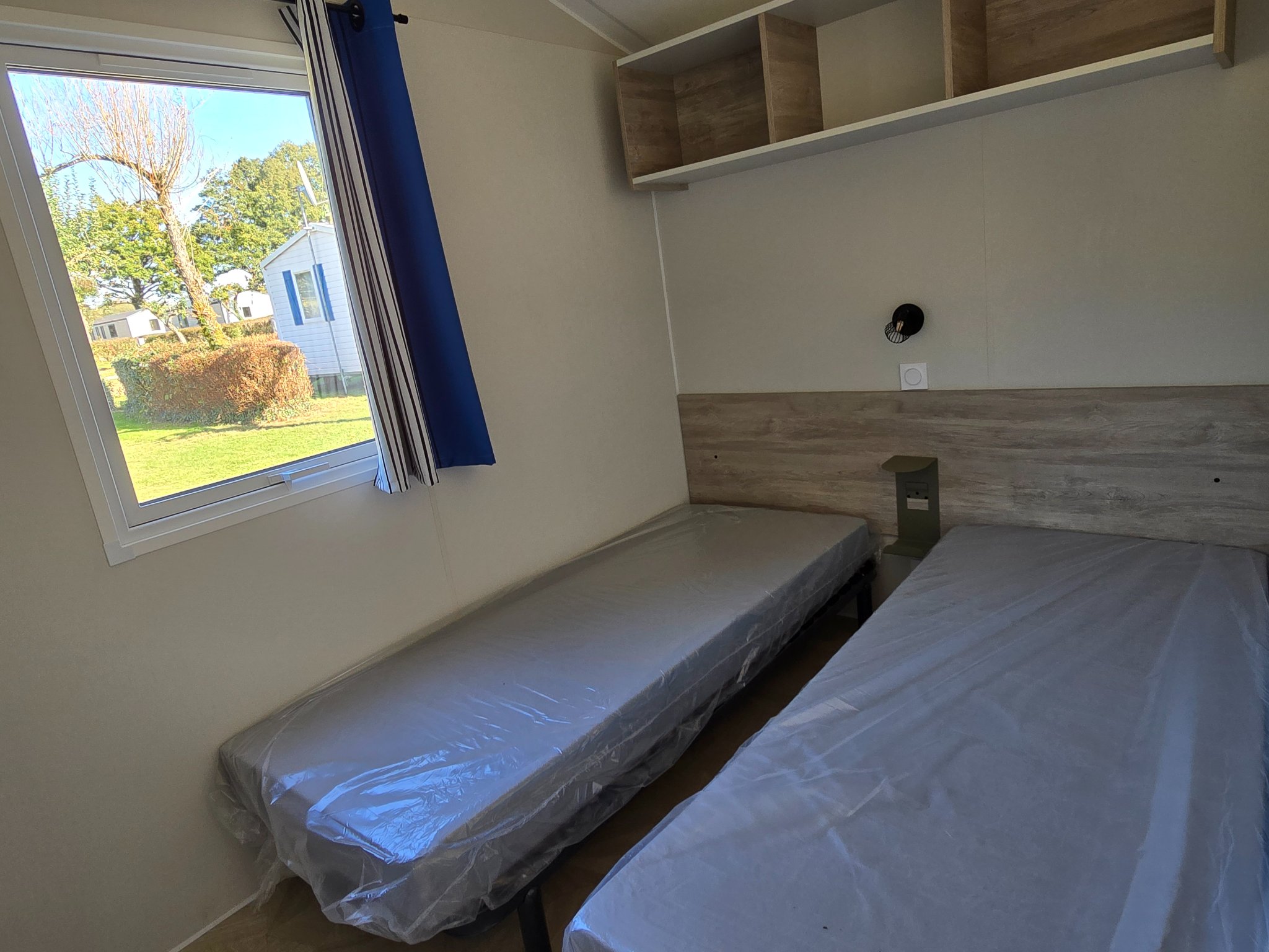 Nous proposons un mobil-home Chevalier Galahad de 25 m² (2 chambres) pouvant accueillir 4 personnes. Ce mobil-home dispose d’une terrasse semi-couverte de 9 m².