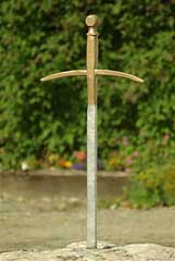You will discover, in the course of the paths of the campsite, the Knights : Lancelot, Gauvain, Galahad, Perceval, Tristan ...... King Arthur... the sword Excalibur in its rock ..... Graal sculptured on the Celtic fountain near the river....