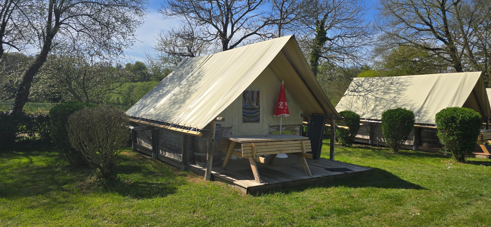 3 Tentes en bois/toile - aménagées - sans sanitaires - 4 personnes (15 m²) + terrasse de 9 m²